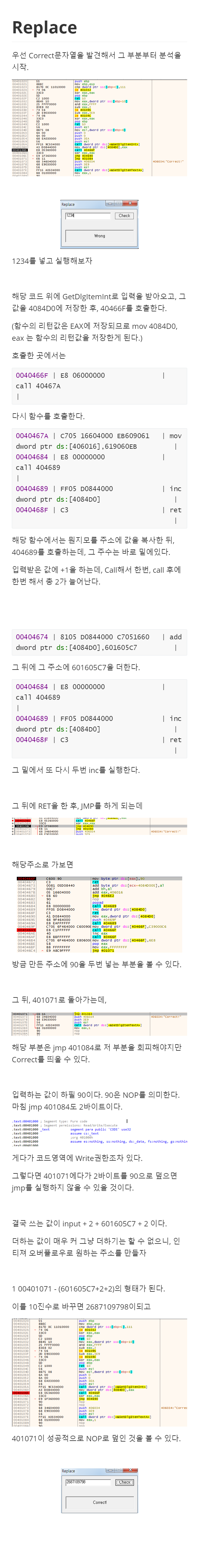 | [reversing.kr] Replace (0) | 2019.07.12 |